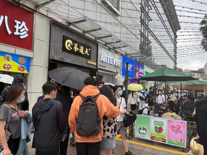 5月2日,在位于深圳著名商區歡樂海岸的八合里餐廳,消費者排起了長龍,“我在網上搶了一張滿200元減80元的餐飲消費券,買單時發現平臺上有該商家的滿減代金券,又省了40元,非常劃算。”消費者李女士開心地說。