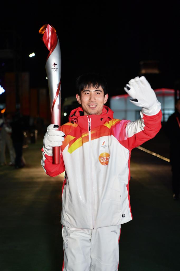 2022年2月2日,北京冬奧會火炬在首鋼園傳遞,作為火炬手的史曉剛在火炬傳遞中。新華社記者李鑫攝