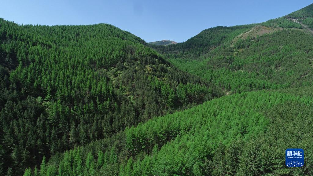 這是寧夏固原市原州區水溝林場天然林資源修復保護工程(5月11日攝,無人機照片)。新華社記者 王鵬 攝