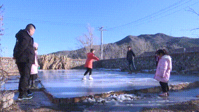 艾國鵬在村里自制了一座冰場