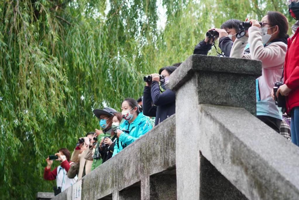 2022年5月17日,在云南省昆明市翠湖公園,李維薇和周修遠帶領市民體驗傳統觀鳥并介紹AI智能鳥類識別系統。(受訪者供圖)
