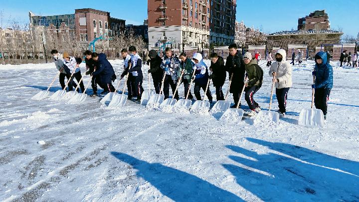 長春新區(qū)吉大尚德學校學生參與掃雪勞動。受訪對象供圖
