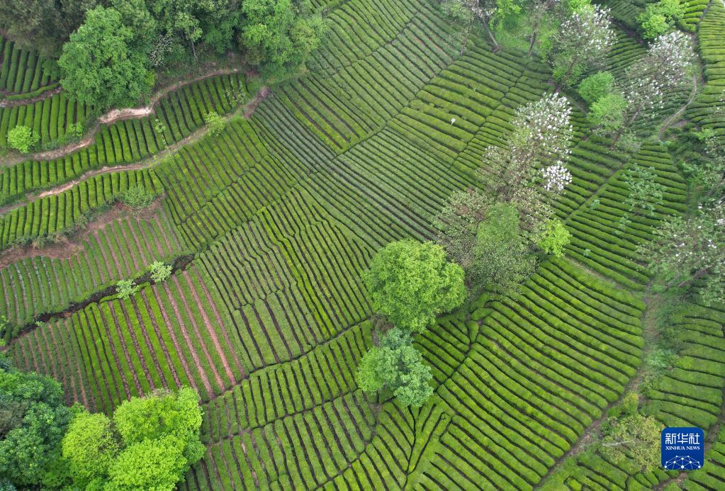 陜西西鄉縣峽口鎮一處茶園景色(4月15日攝,無人機照片)。新華社記者 邵瑞 攝