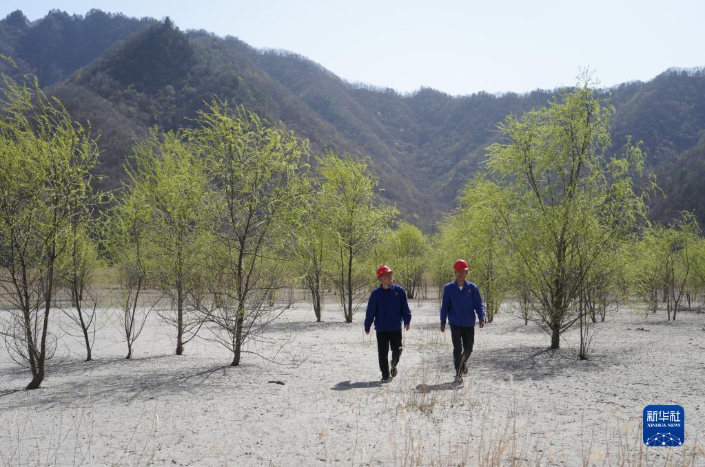 金堆城鉬業集團有限公司工作人員在經過生態治理后的木子溝尾礦庫內巡查(4月7日攝)。新華社記者 邵瑞 攝