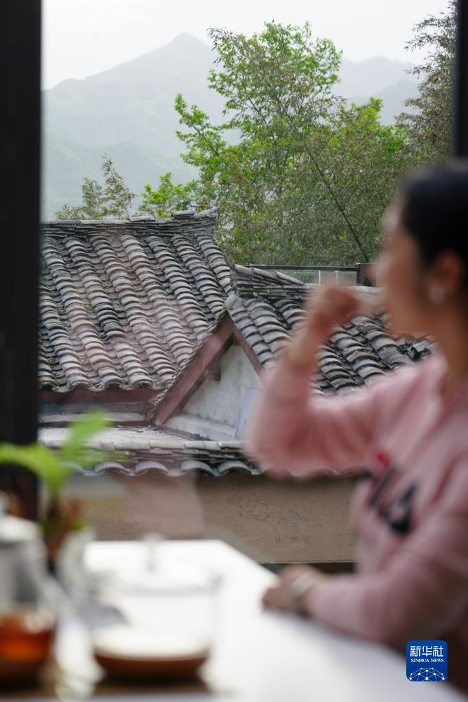 游客在陜西佛坪縣西岔河鎮銀廠溝村一家民宿內喝茶(4月19日攝)。新華社記者 邵瑞 攝