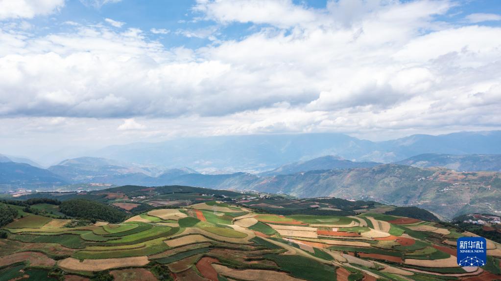 這是東川紅土地一景(6月2日攝,無人機照片)。新華社記者 胡超 攝