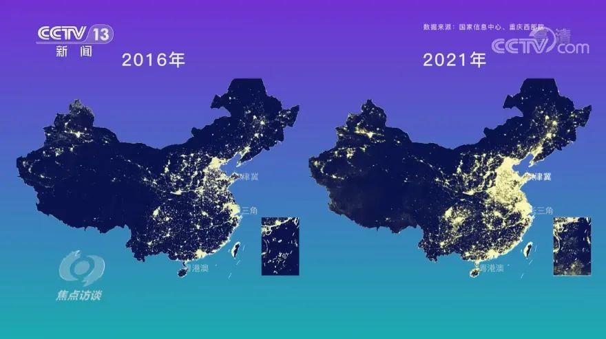 △5年間,中國經濟體量穩步增長,而體現經濟活躍度的燈光帶,向著粵港澳大灣區、長三角、京津冀等幾個區域集中呈明顯特點。(國家信息中心供圖)