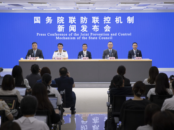 7月8日,國務(wù)院聯(lián)防聯(lián)控機制就科學(xué)精準做好疫情防控工作有關(guān)情況舉行發(fā)布會。新華社發(fā)(楊佳 攝)
