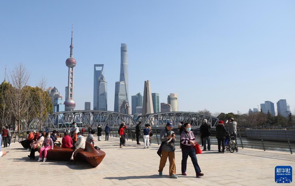 人們?cè)谏虾LK州河邊漫步休閑(2021年2月21日攝)。新華社記者 方喆 攝