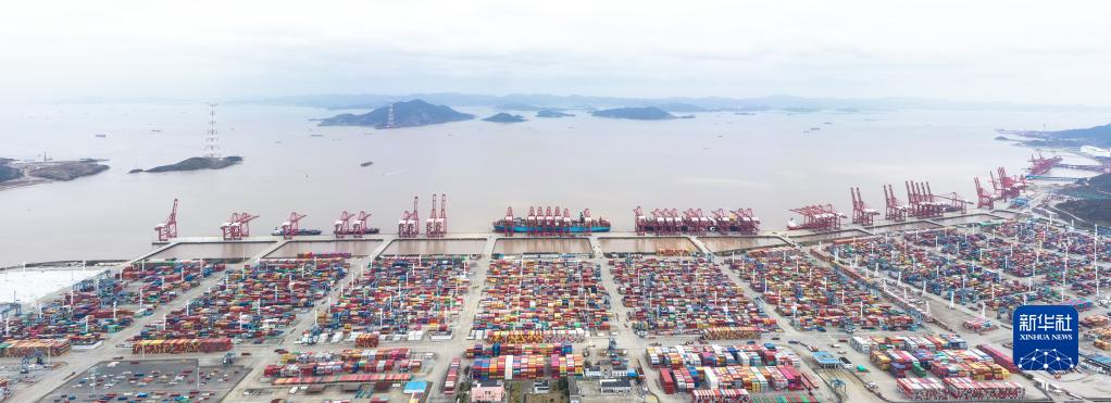 浙江寧波舟山港穿山港區(2021年3月3日攝,無人機照片)。新華社記者 翁忻旸 攝