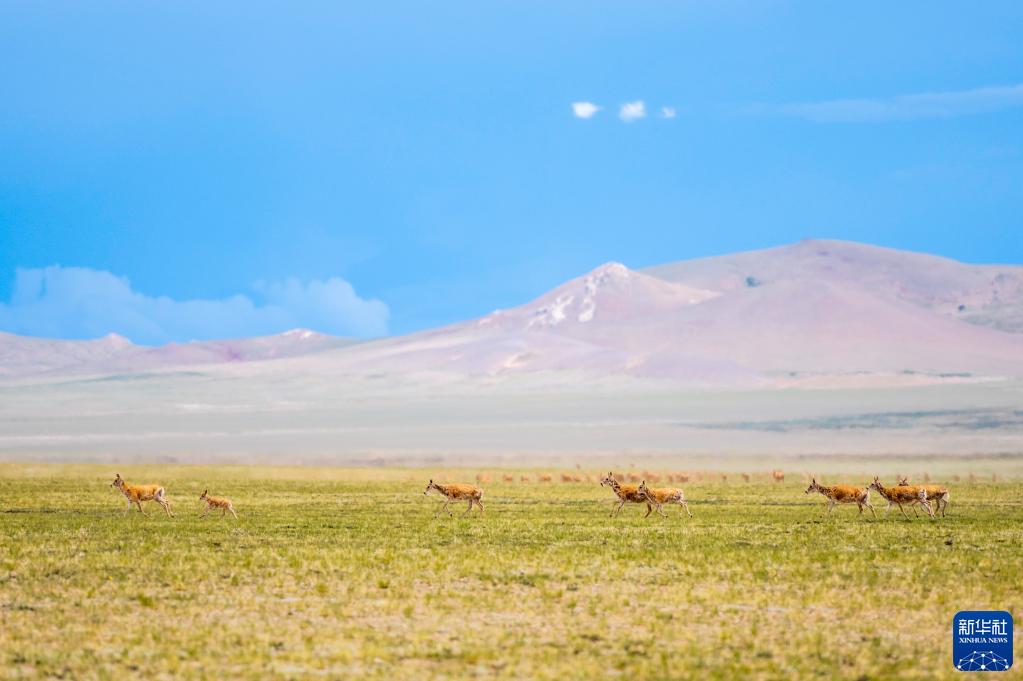 在雙湖縣境內(nèi)拍攝的藏羚羊(7月11日攝)。新華社記者 周荻瀟 攝