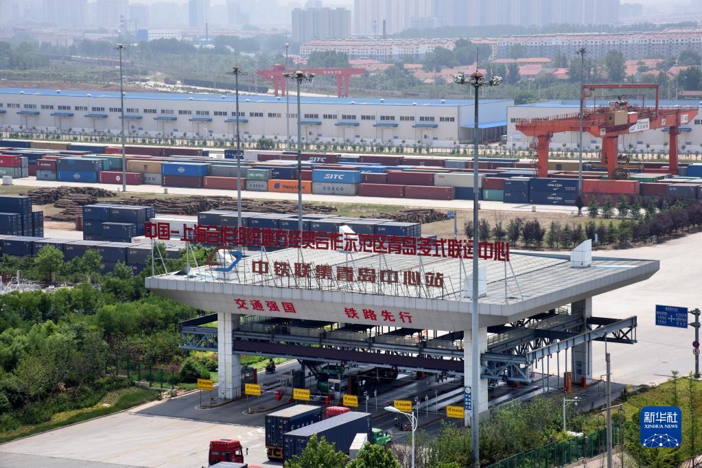 這是位于青島膠州的上合示范區(qū)青島多式聯(lián)運(yùn)中心(2019年6月12日攝)。新華社記者 李紫恒 攝