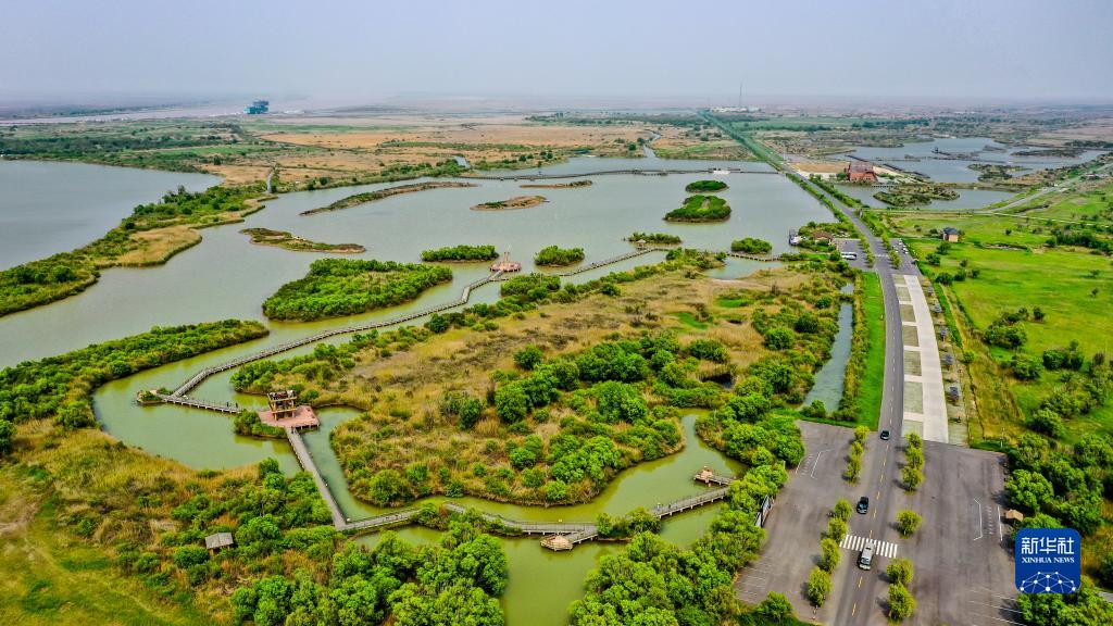 這是山東黃河三角洲國(guó)家級(jí)自然保護(hù)區(qū)景色(2021年5月13日攝,無人機(jī)照片)。新華社記者 郭緒雷 攝