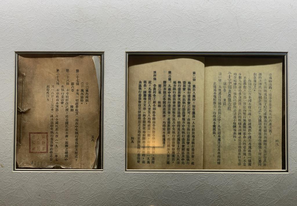 在學(xué)堂內(nèi)部的張人亞事跡陳列室,中國共產(chǎn)黨第一部黨章的復(fù)制件,擺放在最顯要的位置。2022年7月,黨章學(xué)堂還在新展廳開辟了一面“黨章墻”,陳列著不同時期不同版本的黨章。