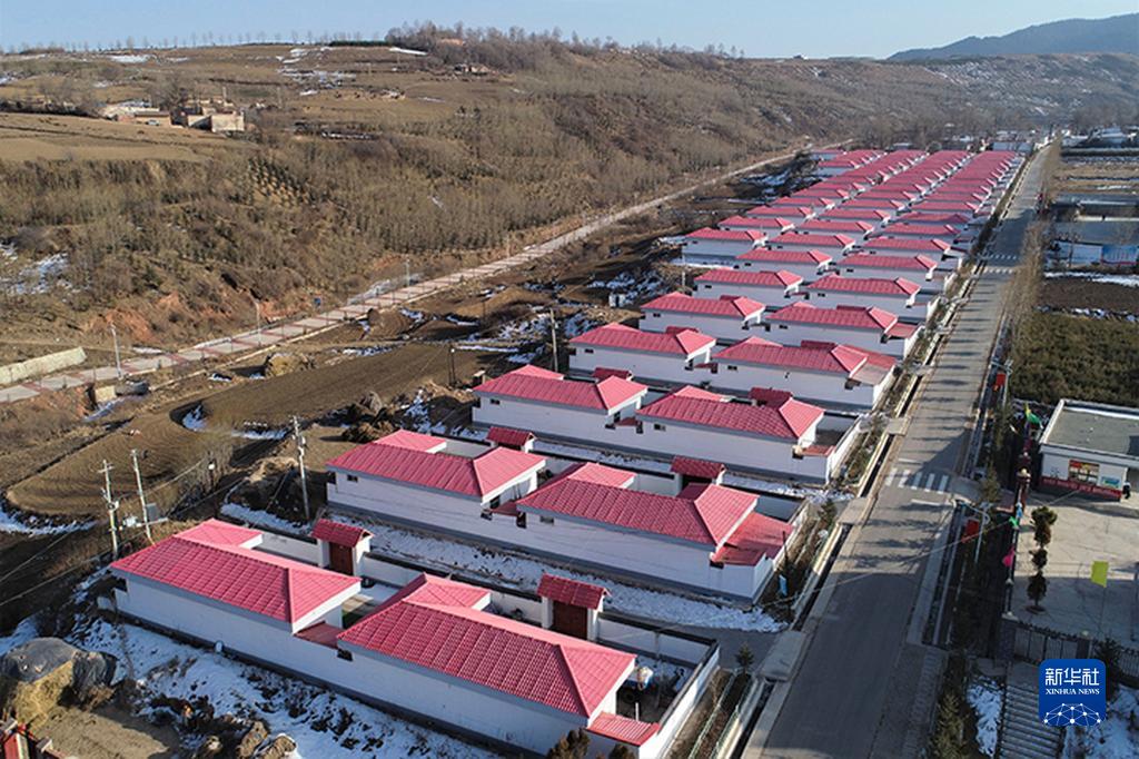 2021年2月6日在甘肅省定西市渭源縣元古堆村拍攝的鄉村道路和易地扶貧搬遷點。新華社記者 馬希平 攝