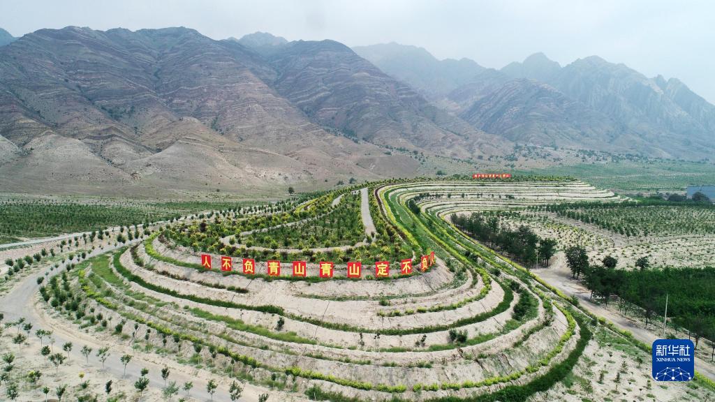 位于寧夏石嘴山市平羅縣崇崗鎮的賀蘭山東麓黃屯子生態修復治理工程(2022年8月2日攝)。新華社記者 王鵬 攝