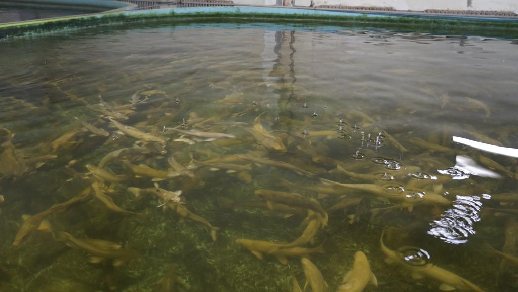 位于青海省海北藏族自治州剛察縣的青海湖裸鯉救護中心沙柳河泉吉河增殖實驗站,是湟魚“人工大產(chǎn)房”之一。記者看到,在實驗站車間里,分布著一個個圓形大水缸,密密麻麻的小魚苗形似小蝌蚪般,隨著清澈的水流在水缸內(nèi)快速地轉(zhuǎn)著圈游動。