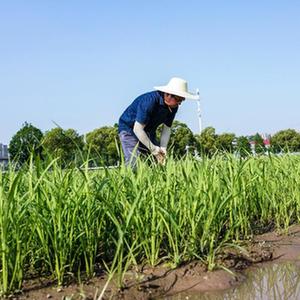 記者循著周雷同事手指的方向看過去,一個頭戴草帽、腳穿膠鞋、皮膚黝黑的“莊稼漢”正弓著腰在稻田里忙碌,他身上的衣服早已被汗水浸透。