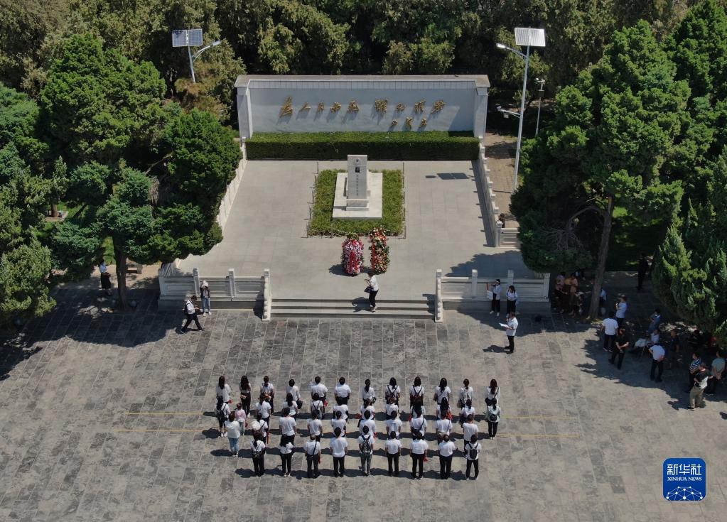 參觀者在位于河南省蘭考縣的焦裕祿紀(jì)念園瞻仰焦裕祿烈士墓(2021年6月24日攝,無人機(jī)照片)。新華社記者 李安 攝