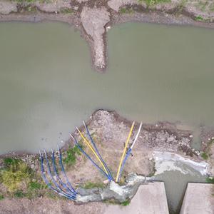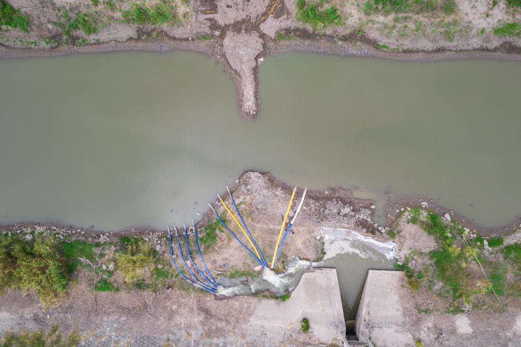 湖南省常德市安鄉縣三岔河鎮的一處提水作業點(無人機照片)。新華社記者 陳思汗攝