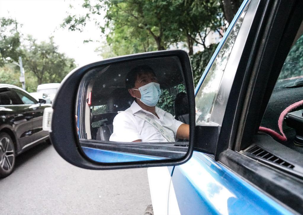 臨近中午,街上的行人明顯減少了,劉喜云把車停在路邊一個面館旁,不到10分鐘就吃完一碗面。“我們吃飯沒點兒,也沒固定地方,客人少了再吃,走到哪里吃到哪里。”他說,“今天想去稍微偏遠點的街道轉轉,那里的乘客更需要我們。”