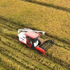 9月28日,合肥市肥西縣花崗鎮(zhèn)河豐社區(qū)村民駕駛收割機收獲中稻(無人機照片)。新華社記者 劉軍喜 攝