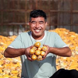 9月22日,在河南焦作博愛縣磨頭鎮(zhèn)崔莊村,“70后”崔衛(wèi)民展示今年豐收的玉米。新華社發(fā)(程全攝)
