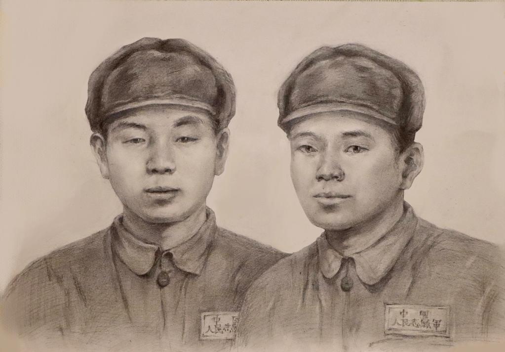 “00后”孫小可就讀于安徽師范大學視覺傳達與設計專業,今年初,來自安徽宿州的九旬老兵盧致儉委托孫小可,畫一張自己和弟弟盧劍的合影。盧劍烈士21歲那年犧牲在抗美援朝戰場,生前只留下一張十分模糊的素描畫,這為繪制兄弟倆的合影畫像增加了難度。
