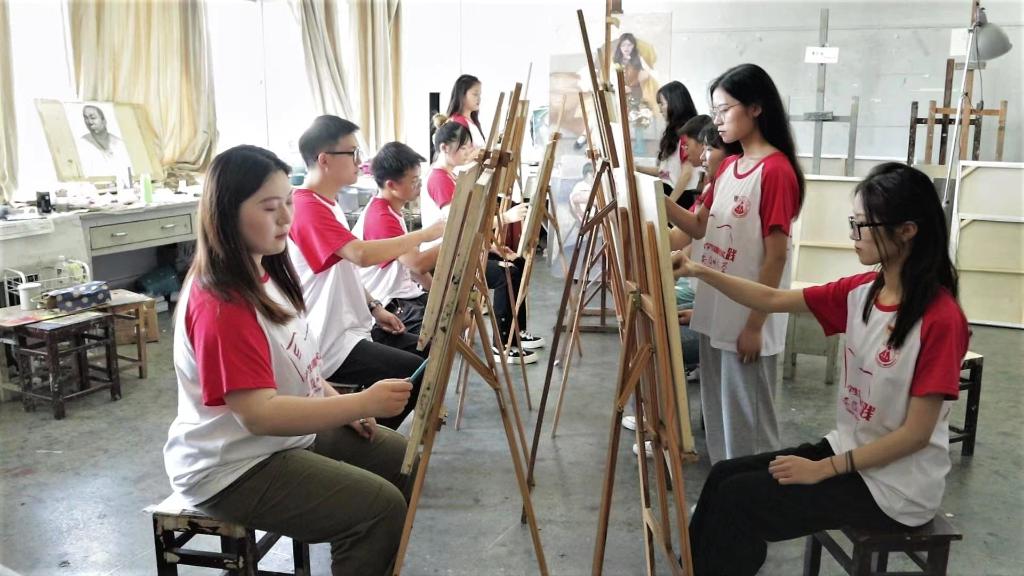 安徽師范大學的大學生志愿者在為烈士畫像。(受訪者供圖)