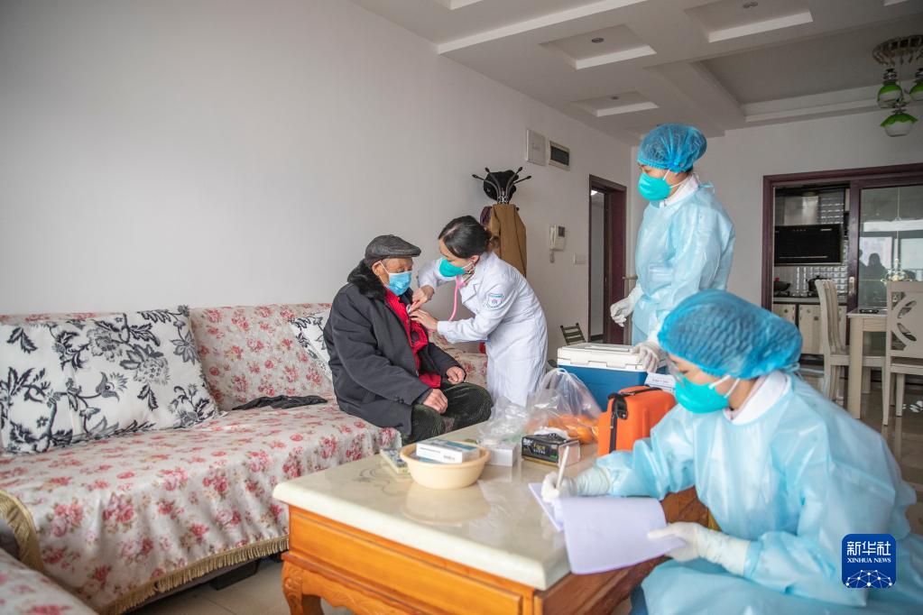12月16日,在重慶市永川區中山路街道紅河路社區居民家中,流動接種小分隊為接種疫苗的老年人做接種前的問診和身體檢測。新華社記者 黃偉 攝