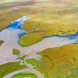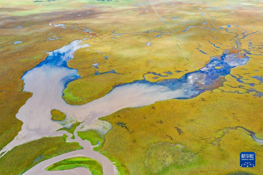 這是甘肅省甘南藏族自治州瑪曲縣阿萬倉濕地內的一處沼澤(2022年9月17日攝,無人機照片)。新華社記者 郎兵兵 攝
