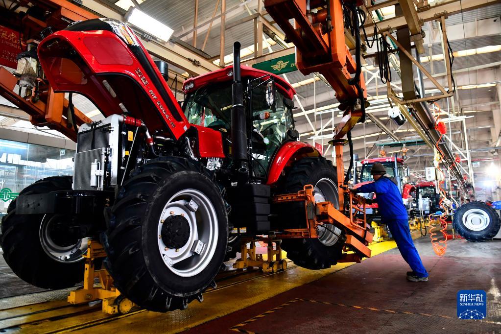 2月15日,在山東五征集團山拖農業裝備有限公司,工人在生產線上裝配農用拖拉機。新華社記者 郭緒雷 攝
