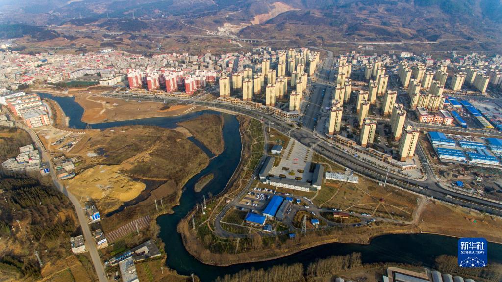 這是位于云南省昭通市境內的跨縣易地搬遷安置區靖安新區(2021年2月3日攝,無人機照片)。新華社記者 江文耀 攝