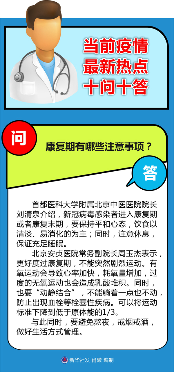 首都醫科大學附屬北京中醫醫院院長劉清泉介紹,新冠病毒感染者進入康復期或者康復末期,要保持平和心態,飲食以清淡、易消化的為主;同時,注意休息,保證充足睡眠。