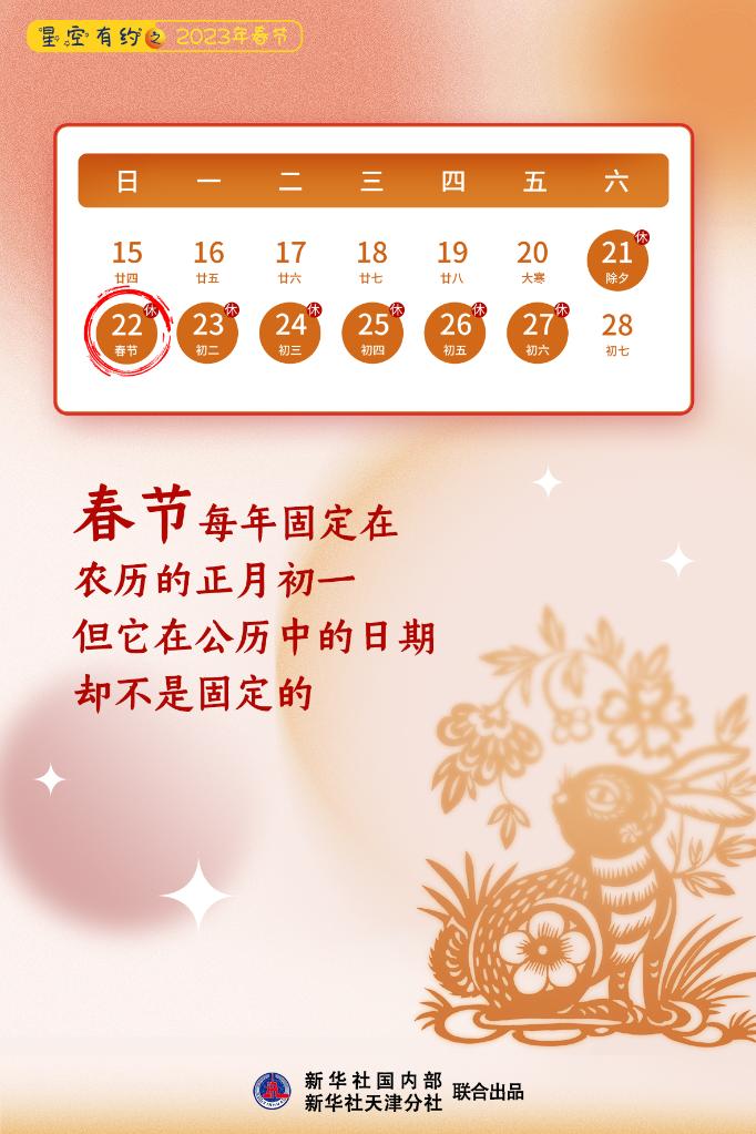 新華社天津1月10日電(記者周潤健)春節(jié)的腳步日益臨近,1月22日,我們將迎來2023年春節(jié)。天文科普專家介紹,2023年春節(jié)是21世紀這100年里的第二早春節(jié),比21世紀最早春節(jié)只晚了一天。