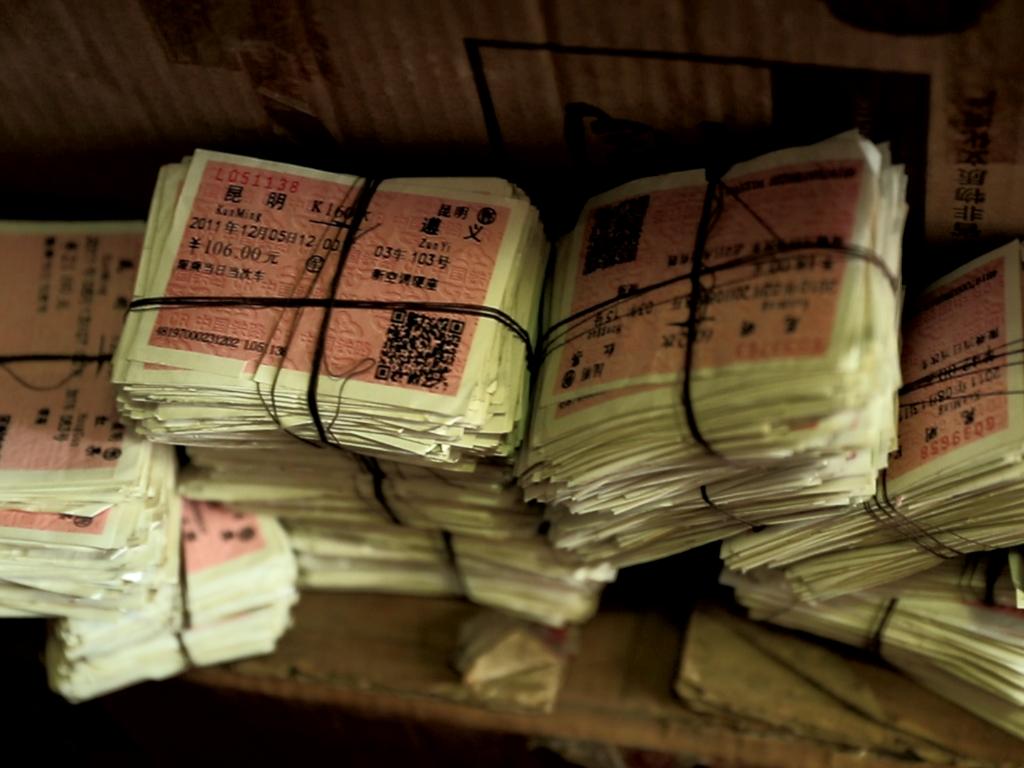 孫昆育收藏的部分火車票。新華社記者丁怡全 攝