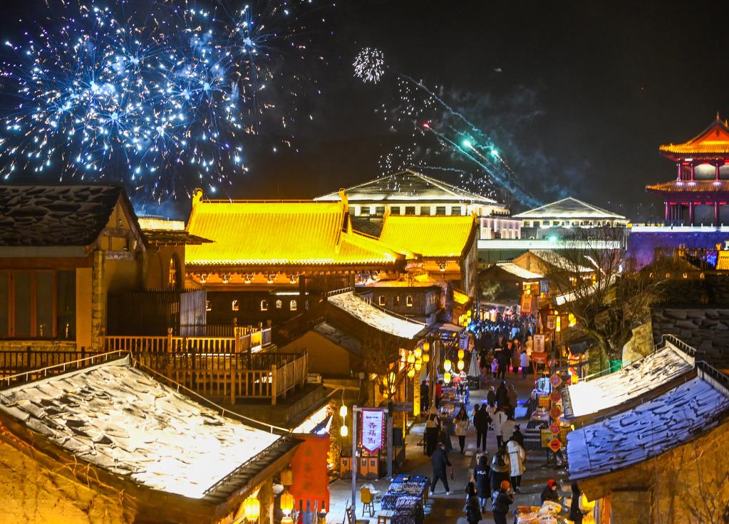 游客在金延安文化旅游產(chǎn)業(yè)園內(nèi)游覽(1月14日攝)。新華社發(fā)(鄒競一攝)