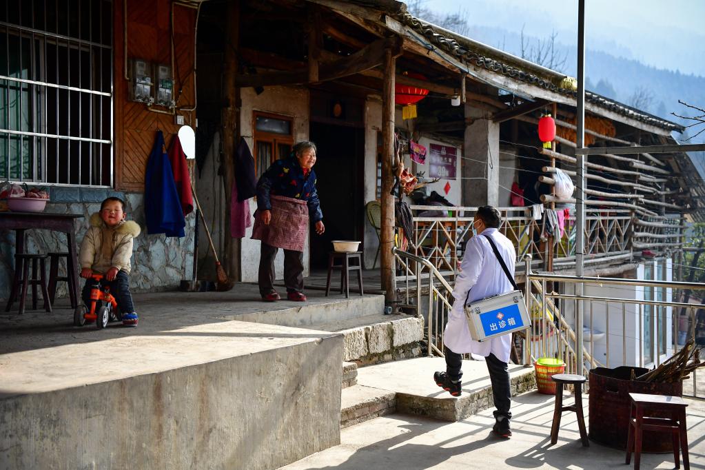 1月19日,在北川縣曲山鎮石椅村,村醫趙太安入戶走訪重點人群。新華社記者 張超群 攝
