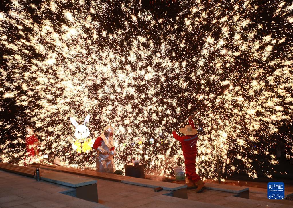 河北省涉縣張家莊一街村,制作跑馬花燈的工人們延續百年傳統技藝,忙著趕制節日期間的訂單;浙江省仙居縣金竹溪村,400多村民舞起一條360多米長的板凳龍,一派壯觀喜慶;廣西羅城仫佬族自治縣思平村,民間剪紙藝人們用一張張福兔窗花,把祝福通過網絡“送”到千家萬戶……