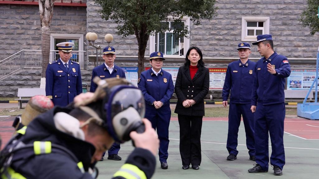 2023年2月14日,全國政協委員楊遠艷到來賓市消防救援支隊調研。新華社記者梁舜 攝