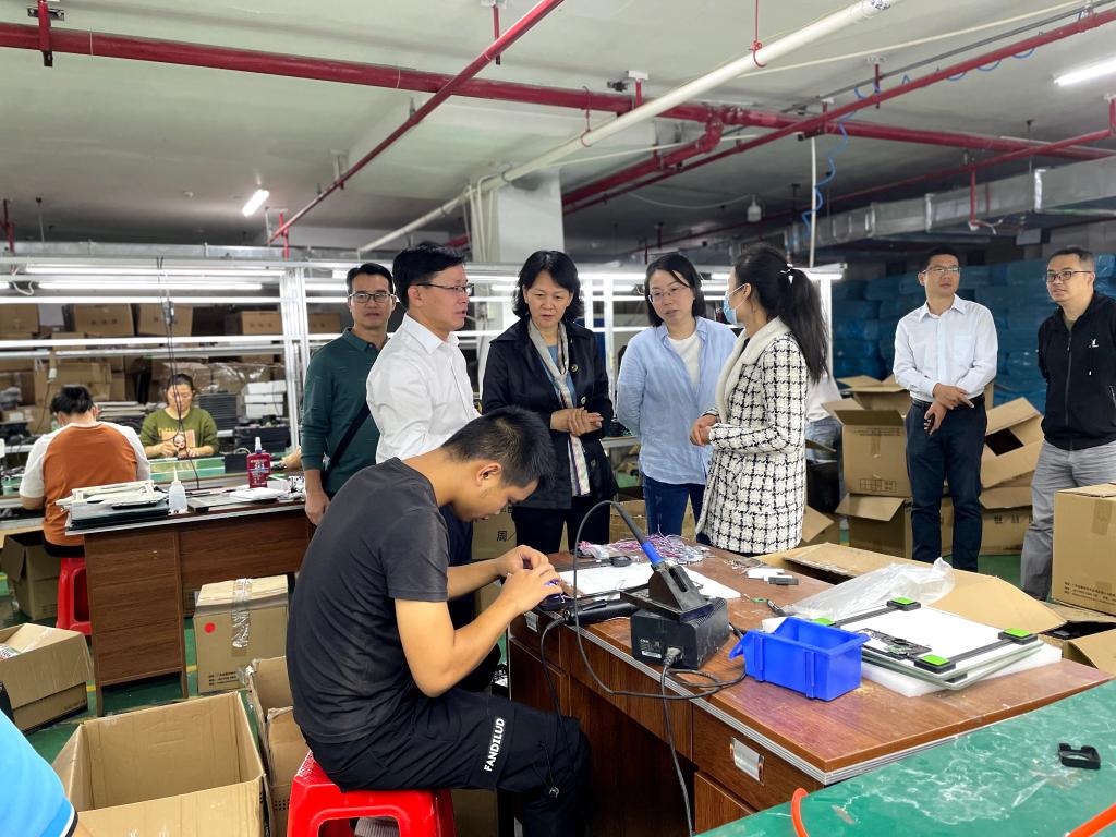 2021年10月13日,全國政協委員楊遠艷(右5)在廣西忻城縣某企業車間調研。(受訪者供圖)
