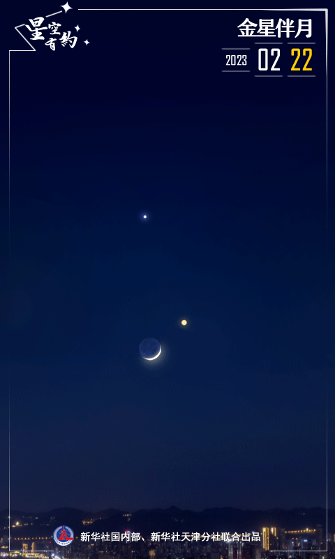 新華社天津2月20日電(記者周潤?。┨煳目破諏<医榻B,2月22日傍晚,西南方低空將上演“浪漫一幕”——明亮的金星與極細的月牙近距離相伴,賞心悅目,煞是好看。