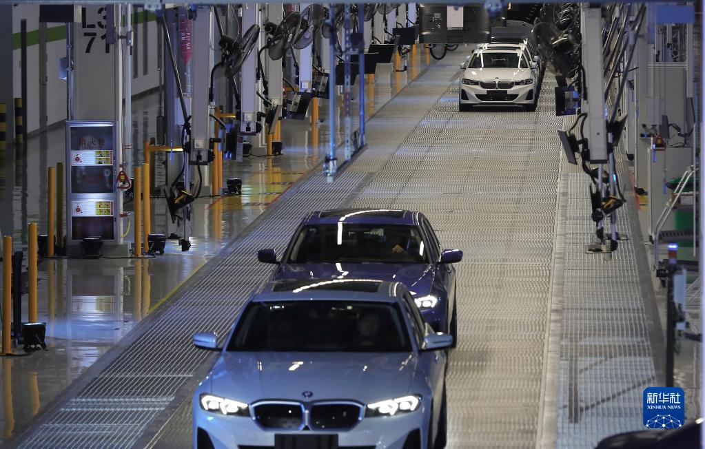 2022年6月23日在沈陽鐵西工廠里達(dá)廠區(qū)開業(yè)儀式上拍攝的全新BMW i3汽車。新華社記者 楊青 攝