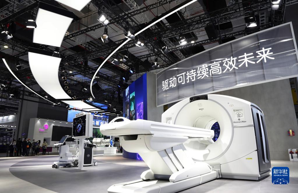 2022年11月2日拍攝的美國GE公司在進(jìn)博會展臺展出的一臺大型醫(yī)療設(shè)備。新華社記者 方喆 攝