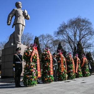2018年3月5日,遼寧省撫順市在雷鋒紀(jì)念館廣場(chǎng)舉行活動(dòng),緬懷雷鋒同志并號(hào)召人們學(xué)習(xí)雷鋒精神。新華社記者 潘昱龍 攝