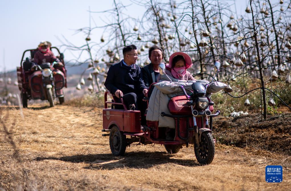 全國人大代表袁海波(右三)在云南省曲靖市馬龍區(qū)一種植基地了解務(wù)工人員就業(yè)需求(2月11日攝)。新華社記者 江文耀 攝