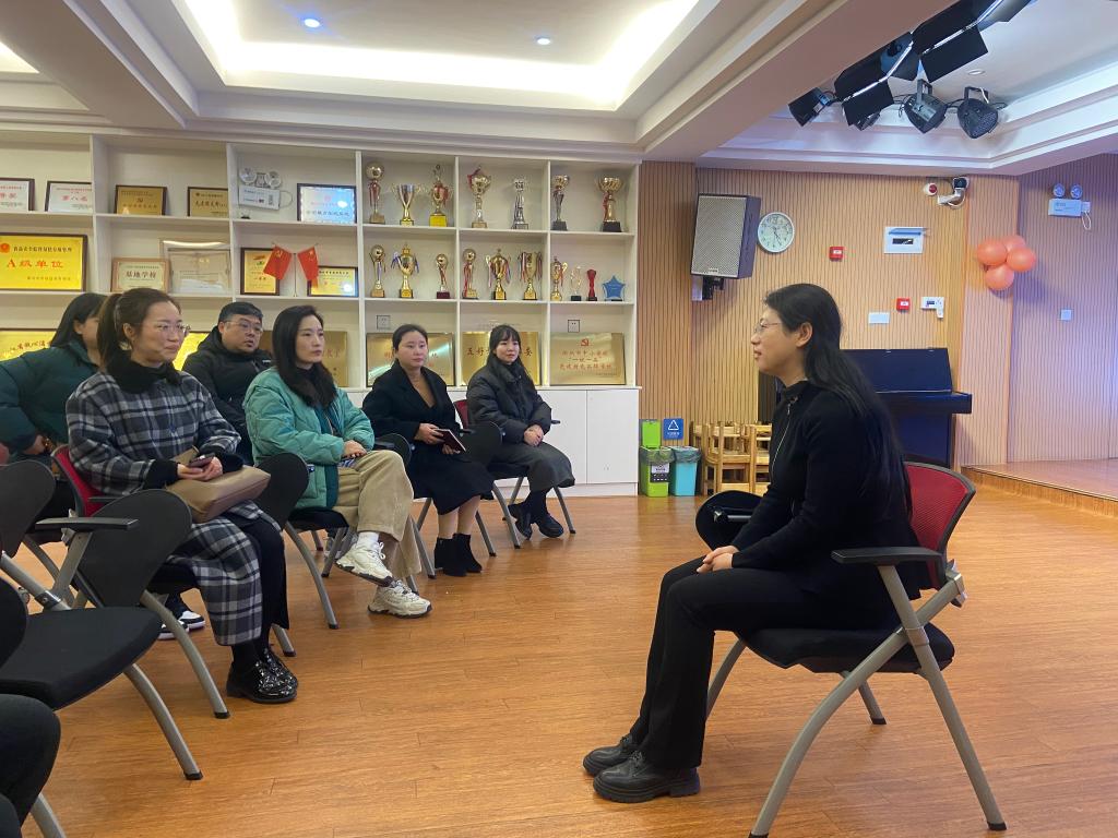 陳瑋(右)日前在衢州市實驗幼兒園荷花園區調研幼兒教育。新華社記者黃筱攝
