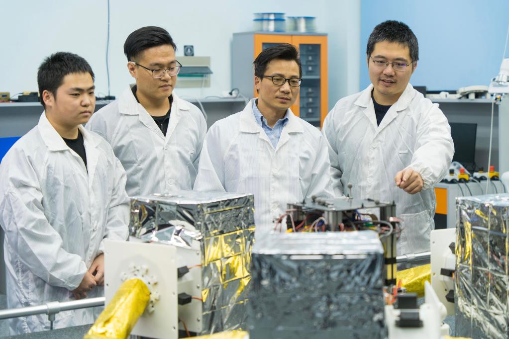 吳立剛(右二)日前和學生們在實驗室里交流討論。(受訪者供圖)