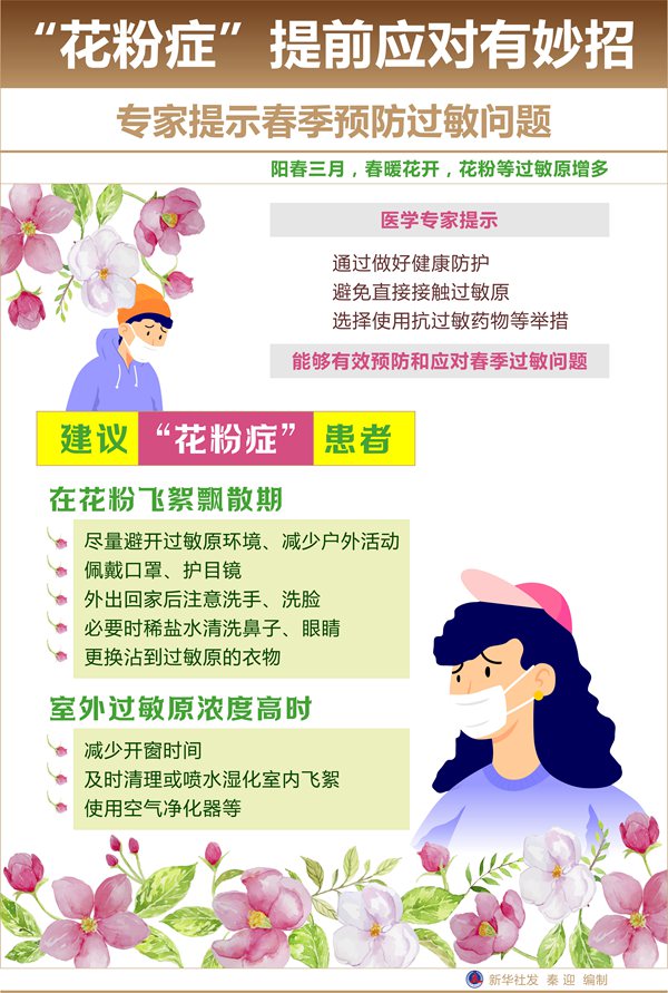 陽春三月,春暖花開。隨著春季到來,花粉等過敏原增多,可能給過敏性體質(zhì)人群的出行和生活帶來不便。醫(yī)學專家提示,通過做好健康防護,避免直接接觸過敏原,選擇使用抗過敏藥物等舉措,能夠有效預防和應對春季過敏問題。