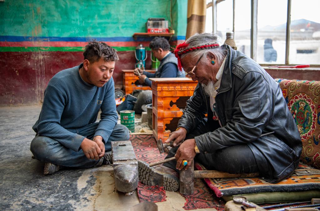 西藏拉孜藏刀距今已有一千多年的生產(chǎn)歷史,是國家級非物質(zhì)文化遺產(chǎn)。次旦旺加是拉孜孜龍藏刀鍛制技藝的第六代傳承人。經(jīng)過長期錘煉,孜龍藏刀形成了一整套獨(dú)特的手工制作工藝。經(jīng)反復(fù)鍛打的藏刀以鋒利著稱,除了生產(chǎn)、生活之用外,甚至還能給別的刀當(dāng)“磨刀石”。